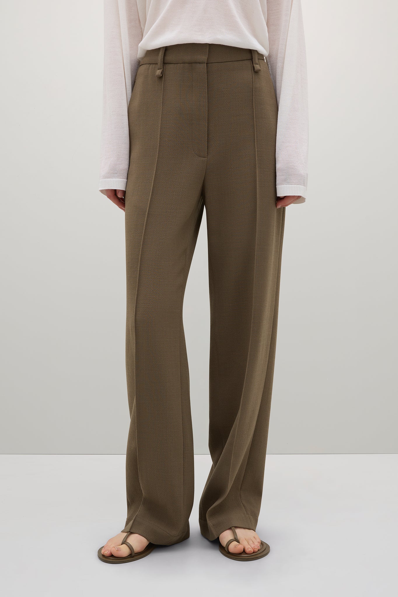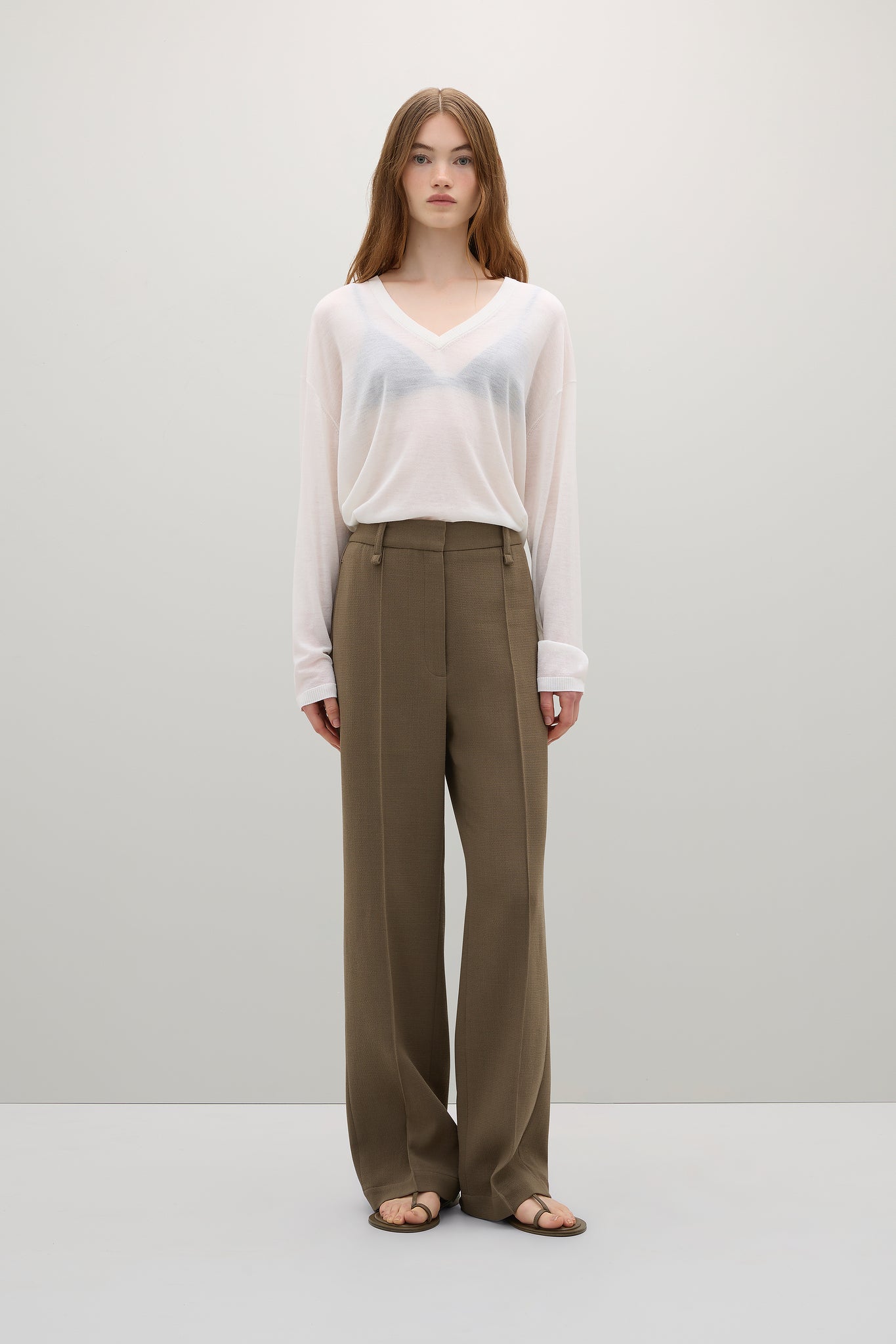 Crafted from a luxurious Turkish wool, the Jacques pant is a relaxed tailored style featuring a pintuck through front and back leg, belt loops and a cut away pocket detail.
