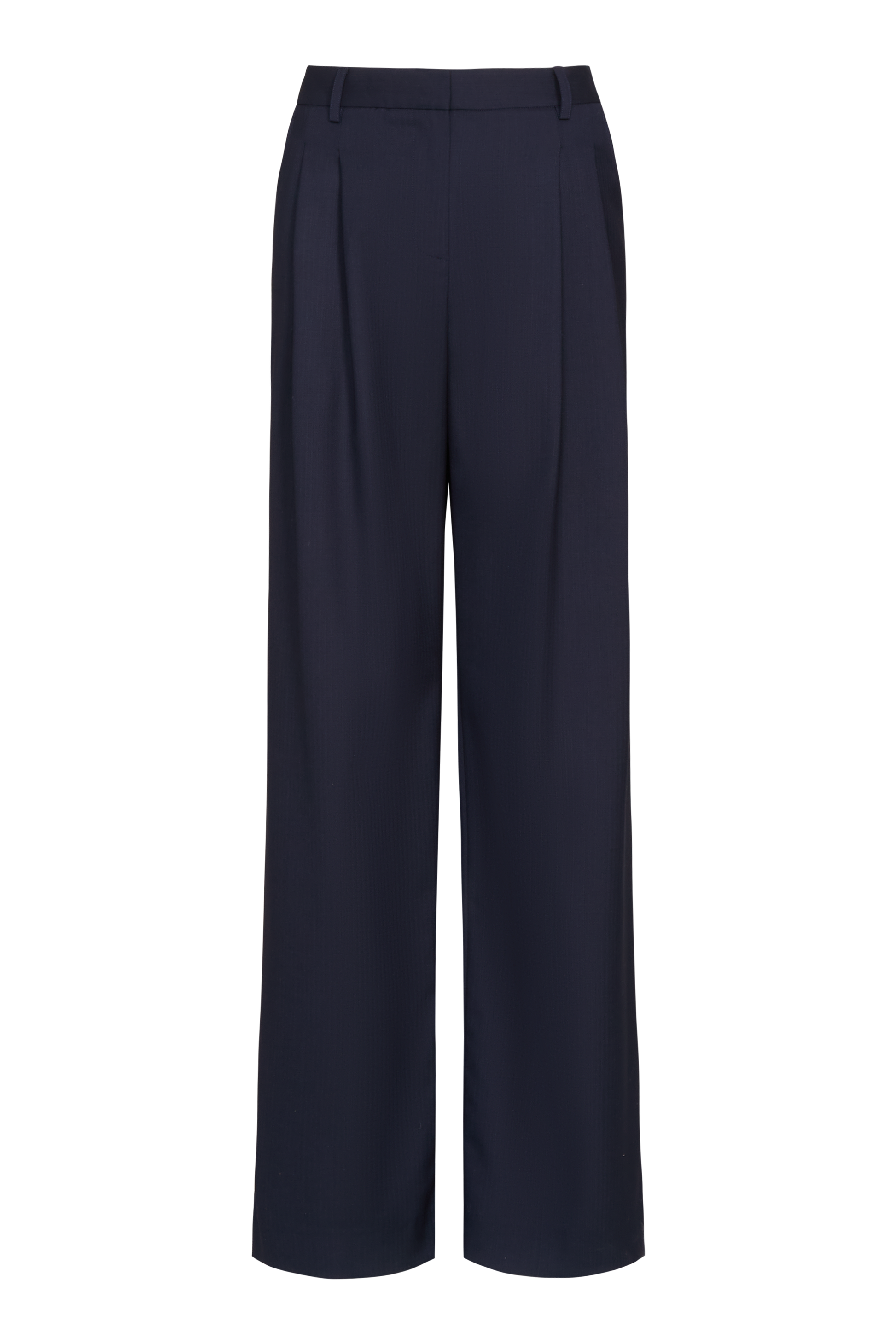 High-rise, wide-leg trousers. Relaxed through the hip and leg with front pleats for added volume. Complete with belt loops, side pockets, and a concealed zip-fly with hook-and-eye closure.